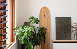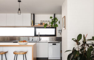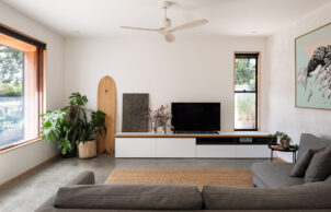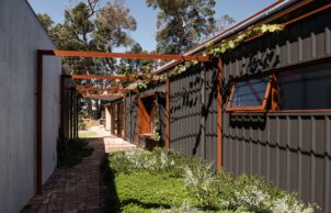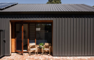 An external ‘shell’ of robust Colorbond cladding is complemented by feature shiplap Pacific Teak and double-glazed cedar fenestrations. In contrast, the hygge interiors of the home embrace warm timbers, zero VOC clay paints, and tumbled face brick walls. Breathable lime-washed hemp walls feature in most rooms. Several innovative construction techniques were employed to increase the performance and health of the home including the use of hemp walls, earthed slab reinforcement, and allowing for natural ventilation of the building’s entire structure.