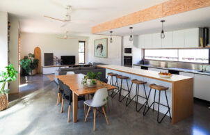 This was the second build for a young family looking to downsize and create a smaller home with maximum flexibility in use. The goal was to keep things as cost-efficient to build as possible while prescribing to solar passive and healthy home principles, optimising the thermal performance, and minimising energy consumption. The secret weapon was to generate income from the house by incorporating a low-maintenance self-contained bed and breakfast.