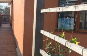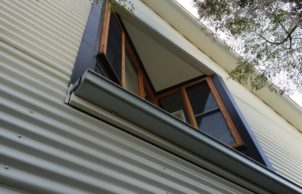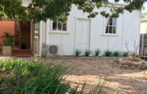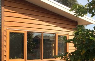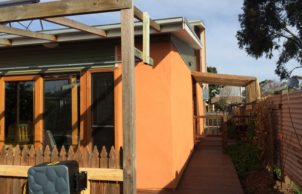 Rammed earth floors and plywood and recycled chipboard internal wall cladding