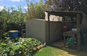 We replaced the roof and insulation, adding a 3kw solar system. The drainage issue was addressed and the house restumped before the sagging ceiling was repaired. The deck to the north was extended and is now shaded by grape vines. The undercover area was enclosed and the shed has been insulated. We currently rent this space out to a small business and could potentially convert it into a small unit.