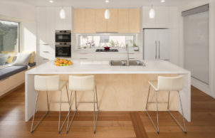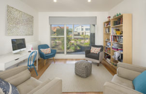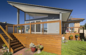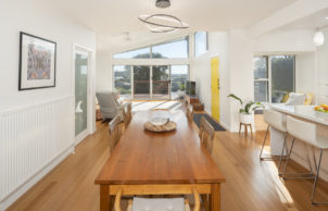 A 1960’s cream brick renovation into a light filled open plan home. Not much appears to have changed externally, however windows were replaced with larger double glazed units, underfloor insulation, external wall insulation and roof insulation was added to make this home perform at a high level in winter. Hydronic heating keeps the home at a constant temperature and the north facing addition acts as a sun trap in winter.