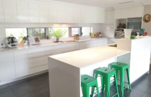 Our home is designed for universal access, with wide doorways and halls, no stairs, large hobless showers, and minimal step downs at doorways for ease of entry. Flick mixer taps and lever door handles are also included.