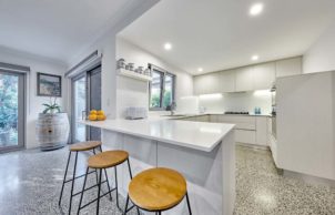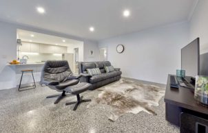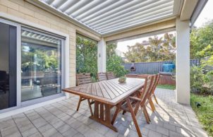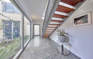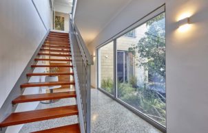 The house was built with energy efficiency in mind. Double glazing with thermally broken and argon filed windows throughout ensures that energy loss is approximately 1/4 of what a standard build would be. The house has been built to require as little heating, cooling, with a main courtyard allowing sun into the house in winter to warm the polished concrete floor, and with roof overhangs that prevent sun exposure during summer.