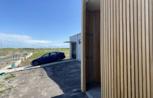 Built with local materials where possible (for example, Tapware and tiles are locally made), low-toxicity paint and finishes. Ceiling fans supplement the natural flow-through ventilation. Water and air are heated by highly efficient Heat pumps. Lighting is Surface mounted efficient LEDs to avoid holes in the insulated building envelope.