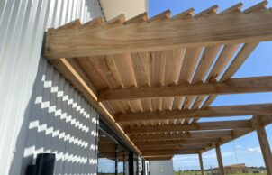 The home started with passive solar design – oriented to the North (over 75% of the double glazed window area is on the north facing wall) combined with carefully designed awnings that allow the sun to penetrate up to 6 metres into the building in winter, while shading the harsh summer heat. This is combined with thermal mass including advanced ‘Phase Change Material’ in the ceilings, concrete floors & internal recycled brick walls, to almost eliminate the need for heating and cooling, with a NATHERs rating of 8.9 stars.