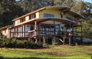 Our two-storey home, with 50km of views over National Parks to the South East Ranges, took four years to build to 2010. The strawbale walls rendered internally with clay and finished with clay paints have been very successful. With external render of lime/sand and a durable mineral paint finish, the walls are hygroscopic, giving a comfortable atmosphere and balanced humidity.