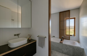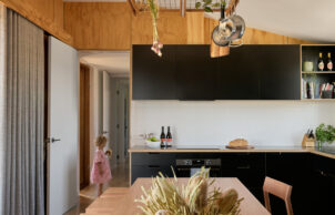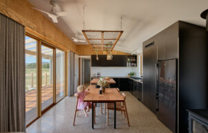 To ensure the home settled into the landscape, local timber and stone were highlighted and paired with galvanized cladding, which provides durability and coherence with the surrounding environment.
