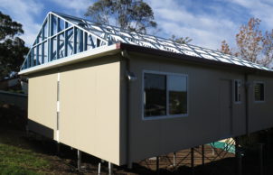 This home is a factory built home built using low embodied energy materials. Unlike a similarly sized home built with traditional materials which can weight 40 plus tonnes, our home weighs only 7 tonnes. This highlights just how low the embodied energy is.