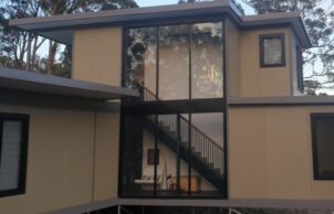 Minimal impact on existing landscape and infrastructure with the installation of the house onto steel piers and bearers being craned into place. No concrete is used in the construction of the house.
