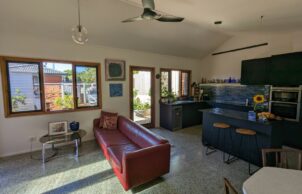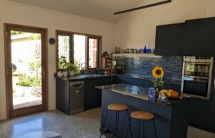 I wanted to create a petite jewel of a home that was energy efficient and easy to live in as I aged. Every room faces north, the house is highly insulated with underfloor heating in the living section. I have a 7.5kw solar system with 2 batteries so I’m able to be largely self sustaining power wise. I have rain water to my kitchen and a smaller tank outside for the garden.