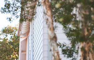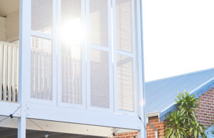 Timber louvre screens to balcony (angled to allow winter sun to enter)