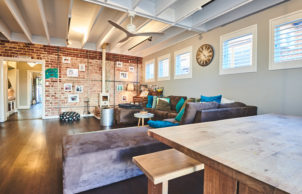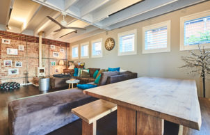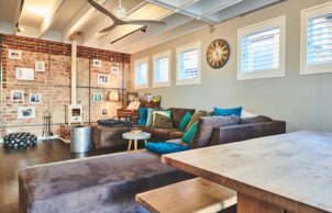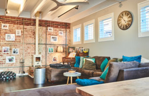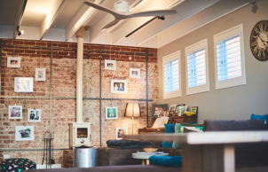 Exposed thermal mass in exposed original brick walls to interior spaces