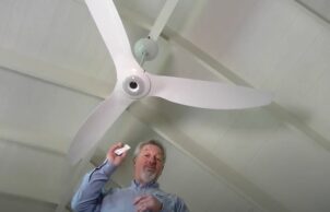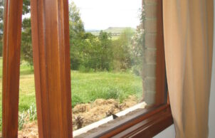 The retrofit began! Maurice, being an R&D kind of guy, developed a series of solutions and retrofit techniques that worked effectively. Extensive draught proofing reduced their energy bill by 50%, secondary glazing to all 46 windows, retrofit wall insulation to all external walls, lighting replacements, ceiling insulation upgrade, underfloor insulation, installed evacuated tube solar hot water systems in combination with a wet flue. Passive solar heating was installed, invisible pelmets fitted over heavy drapes, a small 2.6 kWh solar array was added. Reliance on the wood fire has been reduced / eliminated with the installation of highly efficient air conditioning units and a Big Ass ceiling fan continues its slow rotation to ensure the air temperature is evenly mixed. More recently 3D acoustic tiles were added to the lounge room and an acoustic circle over the dining table to improve the acoustic of the 5m high 9m x 7m central lounge room.