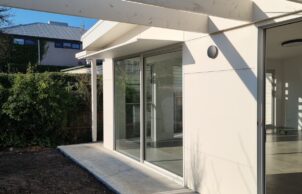 The home had only a 3-star energy rating before undergoing Sustainable Home Transformation and the new design now has a 7-star energy rating! Some of the key features making it a Sustainable Transformation are : majority of the front & back gardens were preserved throughout construction, a number of materials from the existing house were repurposed and reused such as weatherboards, floorboards, roof rafters as pergolas, etc and all timber used in framing PEFC certified. The clever orientation & layout and elements such as thermally broken windows, solar power, good insulation, make our home a very comfortable & energy efficient home!