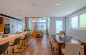 It is well sealed as required by Passive House standards and the walls, roof space and slab are insulated. This ensures little energy is wasted heating and cooling the house. All windows and doors are double glazed and well-sealed. A HRV system provides fresh filtered air constantly and reduces airborne allergens.