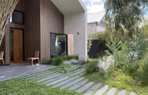 Designed to potentially become autonomous – rainwater, grey water, solar, food production have been factored in to design of the home and landscape.