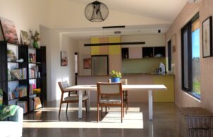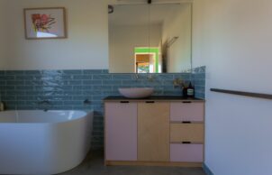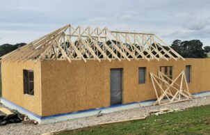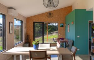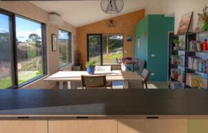 We decided to use Structural Insulated Panels (SIPs) which provides the structure, an airtight and continuously insulated external shell, and in our case also the internal wall finish. The materials sourced by the manufacturer are low VOC, but in any case we designed in a Heat Recovery Ventilation system (HRV) to provide continuous fresh filtered air while exhausting the stale moist air. This is key to not only providing a healthy indoor environment, but also mitigates structural damage caused by condensation and mould.