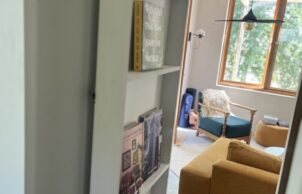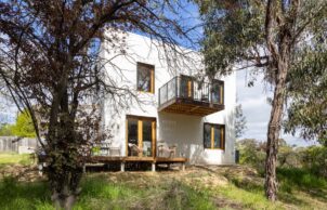 Located in Castlemaine, Central Victoria, the house was built by Joe D’Alo of the Hemp Building Co from Kyneton in 2022 – 2023. The house achieves a 8.5 NatHERS rating, is north orientated, has a 6.6kW Solar System, a 10,999L rainwater tank and 4 and 5 WELS tapware. It features second hand materials and fixtures such as timber flooring and shelves, lighting fixtures and 3.36m long Corian kitchen bench. Tapware and tiles are Australian made while the majority of the furniture is second hand and up cycled locally. The hemp was sourced from the VIC/SA border. The owner went on to study Building Design and launch Design Green Studio which will be operational 2026 onwards for eco, residential builds and renovations.