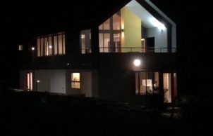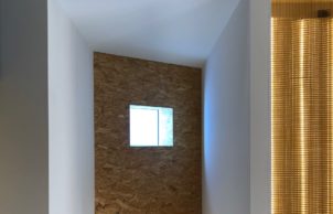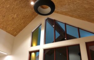 The house is constructed of sandwich panels in the form of SIPs – a unitised system popular in North America, which integrates a foam interior with layers of timber chipboard either side; these are an alternative to standard stick framing building methods and provide a more consistent thermal envelope than traditional stud frame + batt-fill insulation.