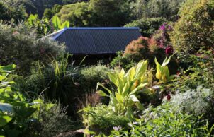 Located on a steep hill, the Moss House garden is an example of a 13-years-old vibrant, sustainable permaculture property, designed with the primary goal to provide the owners with food, medicinal and fibre plants.