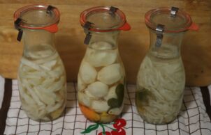 Annual vegetables are grown in 11 raised beds (eight of them are self-watering wicking beds) and the produce is either eaten fresh or preserved in various ways for storage. In the food forest section nearly 30 fruit trees and many perennial vegetables are mixed with flowering plants, attracting beneficial insects and creating a rich and colourful ecosystem, which includes also two beehives of native stingless bees and a flock of five egg-laying hens.