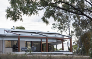 This elongated home capitalises on its position, elevated above an infrequent creek with views across the landscape; one of few clearings on a property that typifies the gentle slopes of the Mudgee area with creek flats below.