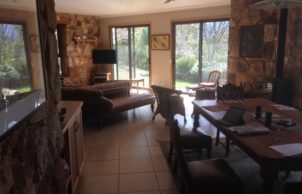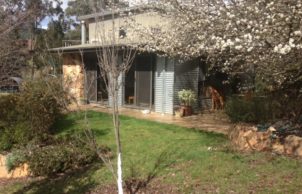 Our house was built in 2008. The land was selected because of the northerly aspect and house designed to take full advantage of the winter sun. The house incorporates large double glazed windows to take full advantage of the views and provide light and airy living spaces. We have utilised local stone to achieve 300 mm thick walls in the living area to provide internal thermal mass which provides a beautiful constant winter warmth and summer “coolth”. The external cladding of galvanised iron and eco ply do not retain heat and are an important part of managing comfort levels in the house. The passive solar design includes effective insulation, careful plantings of deciduous trees