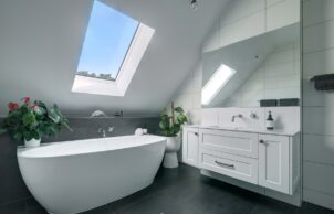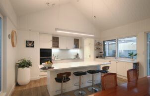 The house is fitted with an HRV system, ensuring a consistent supply of clean, fresh outdoor air while expelling stale indoor air. A 12.5kW solar panel array creates free hot water even in the middle of winter while still exporting energy to the grid; essentially, the home generates more energy than it consumes, making it carbon positive. Combined with quality LED lighting and the latest in energy-efficient appliances, the overall energy consumption of the home is significantly reduced, with a substantial amount of energy being exported to the grid.