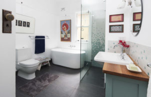 This 1930s semi-detached home was renovated in 2013. Incorporating passive solar design some of its features include: recycled building materials, energy and water efficient appliances, energy efficient lighting, thermal mass and double-glazing. Outside features include a green roof, rainwater harvesting, stormwater management/water sensitive urban design, composting, native garden, food production and a solar PV system.