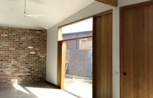 The materials were chosen for optimum thermal performance and low embodied energy where possible: timber trusses instead of structural steel, recycled brick, FSC certified timbers, double and triple glazed windows and insulated hatches. As a result, the home achieves a rating of 7.4 stars.