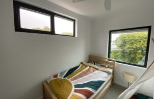 One very important and distinctive aspect about Oakley is that it’s designed to be as airtight as possible without going to the level of Passiv Haus. That means sealing areas well, ensuring the building wrap is sealed well and vapour permeable as well and importantly, given its airtight nature, it needed to be ventilated right. So we researched, designed the fitting and installed a HRV system. We have heat pump hot water and air conditioning that make best use of the solar, being turned on mainly during peak production.