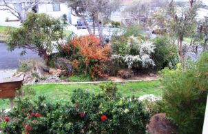 Our home is not open but we warmly welcome visitors who fancy some inspiration or ideas for planting up a north facing verge and front garden with plants that are pretty, mostly tough, do not need much water or maintenance and are bird attracting. We can also show you our eastern and western gardens which are more challenging and are planted with shade tolerant plants. The backyard includes both a food garden as well as native plants … but it is presently being re-landscaped by a 4 month old puppy so some is fenced off and it is not open this year.