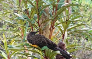 The impact on birdlife of transforming our original garden (basically lawn and two small trees) into a native garden has been enormous. Firstly, removing most of the lawn and just replacing it with shrubs made our place unattractive to the invasive Indian Myna and they departed. As we built up the structure and diversity of plants more bird species visited and every year we observe more and different species. Just last week we spotted our first figbird and the gorgeous bower birds and catbirds are often seen. This year, for the first time, mixed species feeding parties of honey eaters and thornbills are coming through and the fairy wrens made their first appearance. So if you are into native plants and birds come and say hello on Sunday 15th. NOTE: the wonderful Grevillea Park in nearby Bulli is also open on Sunday 15th