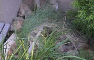We have two in-ground and one bath raingarden, three rainwater tanks that hold a combined 8,500 litres with the water used on the garden. The garden is planted mainly with indigenous plants and a huge vegetable patch that is managed without chemicals. We have two compost bins and a worm farm.