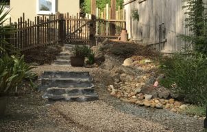 Over the last three years we have been working on new side fences (made from mostly reclaimed timber), gabion retaining walls and the landscaping. We have planted a huge number of indigenous and other native plants and continued to work on front access. Being able to do this while confined during the pandemic kept us sane and has given us some goals to work towards. We’ve followed some great advice from Costa Georgiadis and taken great pleasure in observing nature in our own yard. We have two eastern spinebills who are daily visitors and this year made babies. There are so many skinks and an occasional bluetongue lizard or echidna visit. We’d love to share our experiences with you, so come along and have a look.