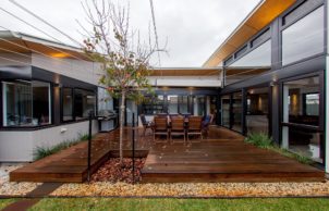 The internal courtyard receives northern sunlight into the back section of house. All except two lights in the house are LEDs.