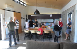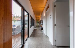 The Passive Resistance House features a combination of lightweight timber construction and reverse brick veneer, Axon Scyon cladding and colorbond corrugated iron, with a few zincalume panels on the front.