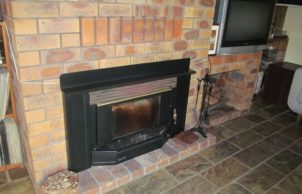 The heatform fireplace which was initially the only source of winter heating was found to be inefficient, so a Masport fire box was inserted into the fireplace in 2002, with hugely improved results. But the house was still cold in winter (and cool in summer) so, in 2012, we knocked out the front, mostly brick wall of the north-facing lounge and installed wall to wall, floor to ceiling glass. The resulting winter ‘greenhouse’ has hugely improved the winter warmth. Note that the roof overhang prevents most summer sun from entering the loungeroom and Roman blinds, while far from perfect, do a reasonable job of excluding any direct sunlight and hence heat that enters the loungeroom in late afternoon.