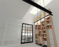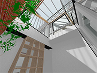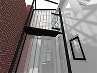Not only has solar gain been a main concern of ours- from an energy efficiency standpoint, but we have also allowed streams of natural light to flow into the interior of this geographically ‘land locked’ site. The double-height ceiling in the entry way acts as an atrium, feeding light through both the clear and frosted glass lining the walls and roof.