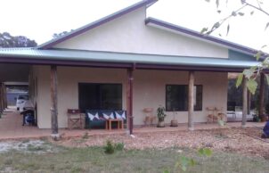 We are situated on a hectare deliberately chosen between town and the coast. We designed our home to have a low running cost and to be comfortable to live in with no additional cooling needed in summer and minimal heating in winter.