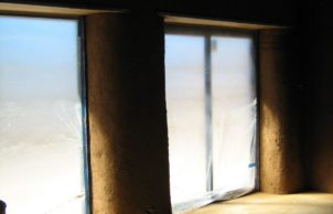 Internal earth render was obtained from our block which we covered with a kaolin clay and sealed with a milk wash resulting in a natural unpainted finish.