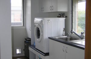 Miscellaneous . There are insulation batts in the ceiling, and some renovated walls. Pelmets are over all windows and heavy curtains on most. We have no clothes dryer, but in the renovated laundry, there is a drying cupboard for clothes which is used during winter, when the heater is on. There is an outside clothes line, and several inside the garage. We have external shade blinds on all but the South facing windows to reduce summer heat.