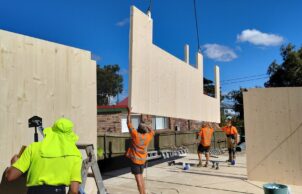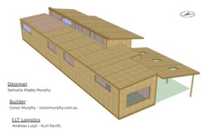 Our friends at Raico Pacific (KLH) modelled these plans for structural integrity and calculated how the precision cut CLT panels should be configured for efficient transport and installation. Once the site had been prepared and footings, piers and bearers put in place, the panels were craned in and assembled in two days.