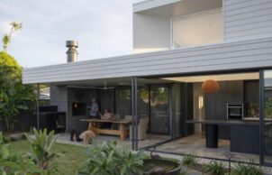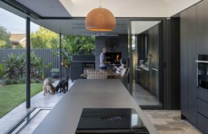 Like many homes of its era, this one was built with little consideration for lifestyle or passive cooling and heating. It faces east-west, has low ceilings and receives little natural light inside, and the easiest thing would have been to knock it down and start again. But reusing the home was important for sustainability, so our solution was to add an open pavilion with a new kitchen and outdoor dining area. The original home was then reconfigured to provide a new laundry, TV room and study, as well as a master bedroom and ensuite that opens to the garden.