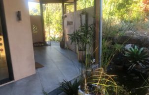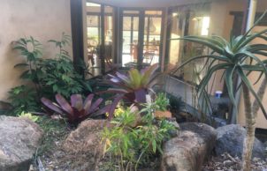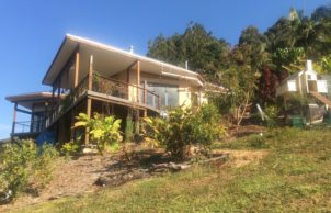 The house needed to be in close connection with the natural subtropical gardens to feel totally connected with the outdoors. This has been achieved with large bi-fold and sliding doors, a leafy pond area that juts into the living room and many green vistas through the windows. The gardens were to sustain us food-wise by containing many local native edibles, fruit trees and vegetables. Almost all of the above have been planted in designated areas or incorporated into restoration areas of native rainforest. Of course, some of these plants are not producing food yet, but we already enjoy a lot of food from our annuals and perennials. Part of the seven acres contains remnants of subtropical rainforest, and regeneration/revegetation is ongoing.