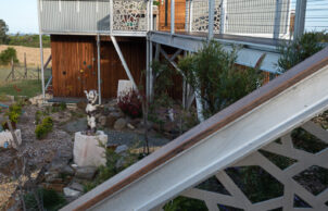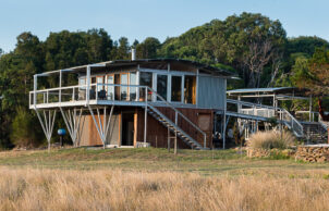 A self-contained prefabricated pod extends the living space without impacting the landscape on our NSW South Coast property. Tucked away on the 16-hectare bushland property, our Ecoshelta pavilion takes advantage of its jaw-dropping headland position while minimising the impact on the landscape and environment.