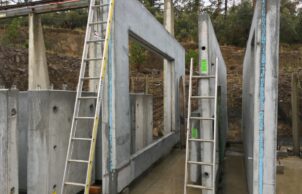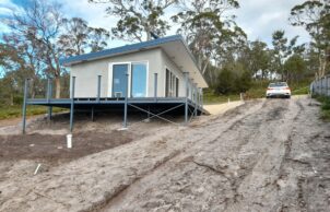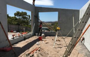 I used a sandwich concrete panel construction. While this contributes a massive 55000kg of CO2 emissions (a normal passenger vehicle emits about 4500kg of CO2 per year), it should be offset by the longevity of the material, rapid build (less builder travel), and solar passive performance (the average Australian household energy use generates 8000kg of CO2 emissions per year).