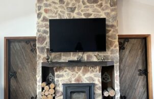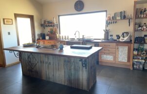 Everything used in the house has a story; a large majority of the wood featured is salvaged wood we collected over years, the bathroom sink is carved from a stone from our property and the fireplace is also made from our own stone, the remaining sinks are hand beaten copper, and all metalwork and woodwork was done by my husband. We have beams collected from the old Whyalla jetty, wood panels from an old local shearing shed featured in the kitchen, and our front door is made from pallet wood.
