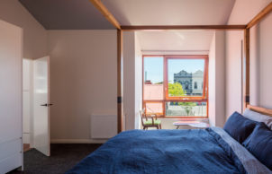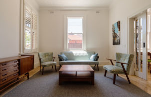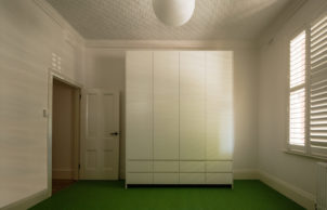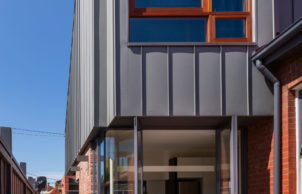 This sustainable addition to a period brick home is carefully considered to be respectful of the original building, its immediate neighbours and its wider urban context. As much as possible of the original house was retained, with only the 1980s lean-to kitchen demolished to make way for the double-storey addition, which contains a new kitchen and bathroom/laundry downstairs and main bedroom with ensuite upstairs. The gabled roof is angled asymmetrically to avoid overshadowing the neighbours to the south, and the entire upper level is clad in zinc standing-seam cladding for its longevity, low maintenance requirement and fine, crisp detailing.
