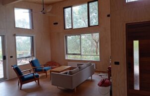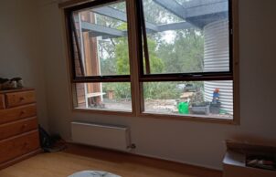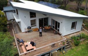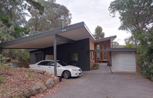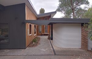 Originally built in the early 1970s, our brick-veneer, flat-roofed house was hot in summer and cold in winter. In 2022 we completed a sustainability retrofit to improve the thermal efficiency and comfort. To achieve this, we put insulation on the outside of the existing brick walls and reclad with Colorbond and timber. A new light-coloured Colorbond skillion roof with clerestory windows were installed. North-facing glazing was increased, south-facing was reduced and double-glazing was retrofitted throughout. Summer shading with eaves and deciduous climbers were included in the design. The house is completely supplied by tank water which is heated by heat pump (gas has been disconnected). Two rain-gardens have been installed to absorb driveway run-off and roof overflow. Sand-bag swales divert street stormwater to the front garden. The wood heater was removed and replaced with heat pump hydronic radiators and a new ceiling fan (there is no air-conditioner). A 3.0kW solar panel system and Zappi charger for our electric vehicle have been installed. Two composting bays have been constructed to process kitchen, garden and human waste from the composting toilet in the shed. Waste is minimised or recycled – our family went 6 months without putting the rubbish bin out.